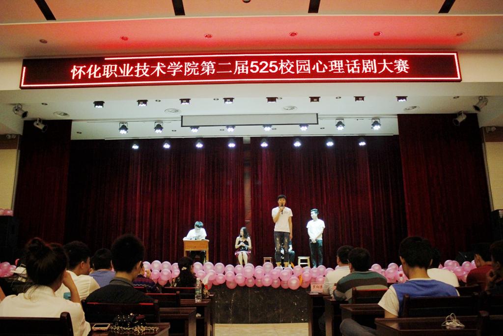 怀化职业技术学院第二届525校园心理情景剧大赛由学工处心理咨询中心主办,院系心理健康部承办,本次心理情景剧从今年5月份开展以来,各系部积极的响应、广泛的宣传,有7个系部上报了13个初选节目,524日晚上在学院大会议室由心理咨询中心组织初选比赛,经过筛选共有9个节目进入决赛。