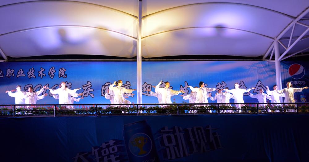 朝气蓬勃是我们的本色,自强不息是我们的追求。在主持人的介绍下,迎新晚会正式开始。有如诗如画、美轮美奂的舞蹈《花溪 花溪》,也有青春阳光、时尚绚丽的《luv me》。有传承中华文化的茶艺表演,也有展现未来的服装秀《概念》。而建筑系带来的合唱《太行山下》是献给祖国生日最好的礼物。由院长王聪田、副书记邬国盛带领的教职工太极拳协会成员踩着音乐的节拍,将太极拳阴阳相生相克、刚柔并济的精髓表现的淋漓尽致,带来的太极拳表演让人赞不绝口。最后,教师代表赵瑾、杨颖合唱《阳光路上》,勾勒出一幅改革开放的蓝图,也展现出怀化职院的未来篇章。