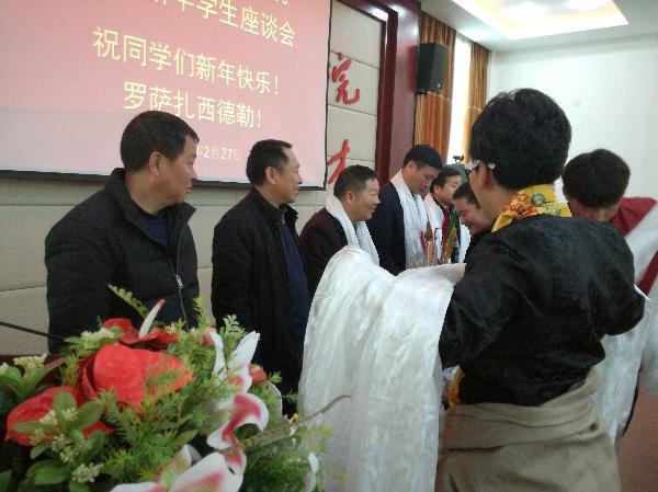 2月27日是藏历火鸡年的大年初一,我院在多功能厅举行藏历新年学生座谈会,院长王聪田、党委副书记邬国盛、副院长胡龙湘出席座谈会,相关中层干部、老师及80余名藏族学生欢聚一堂,共同庆祝藏历新年。